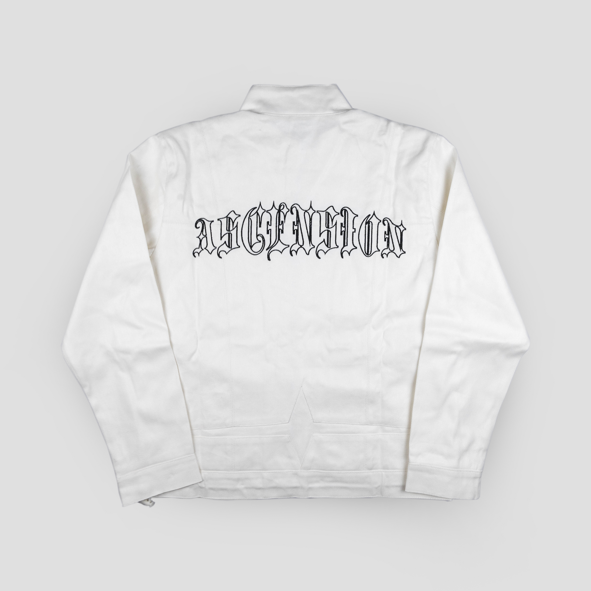 Constructed using premium white denim. Embroidered on the rear. Triple zip front. White lining. Finished with silver hardware. Drawcords at the waist for adjustable fit.